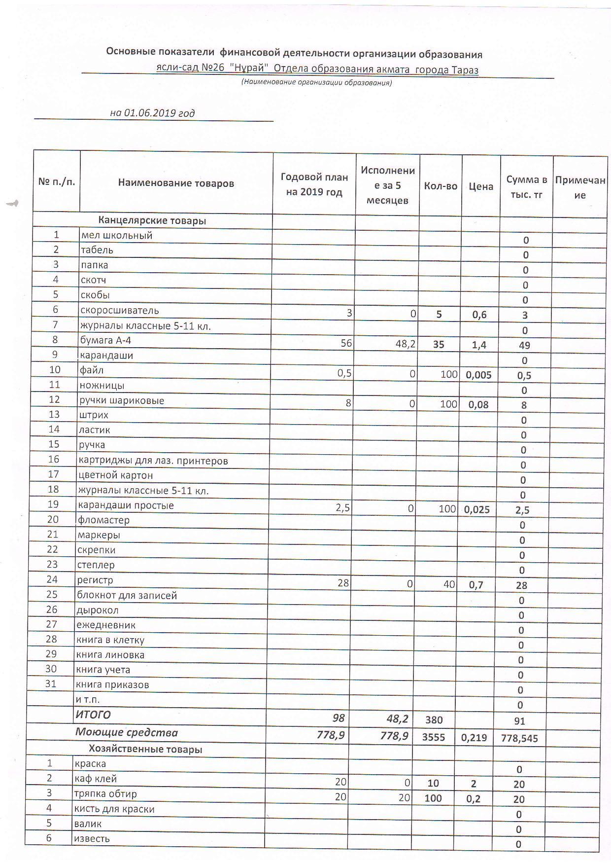 Основные показатели финансовой деятельности- » "№26 «Нұрай» бөбекжай-бақшасы"