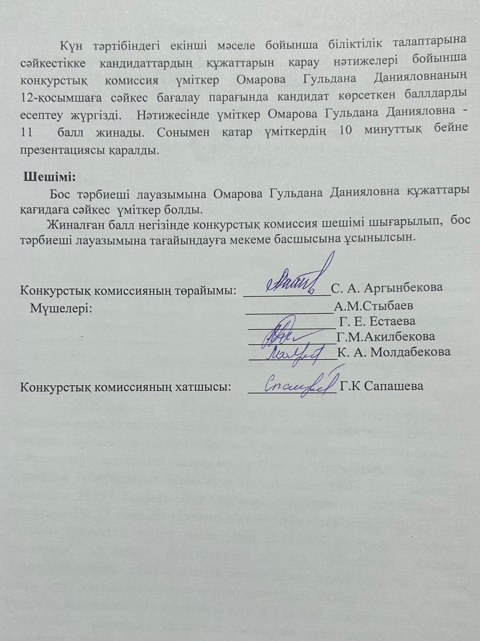 Конкурстық комиссия отырысының хаттамасы
