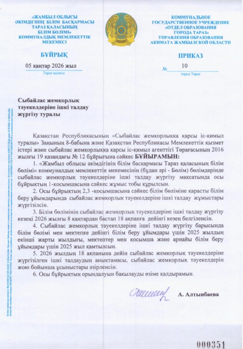 Тараз қаласы әкімдігінің білім бөлімінің